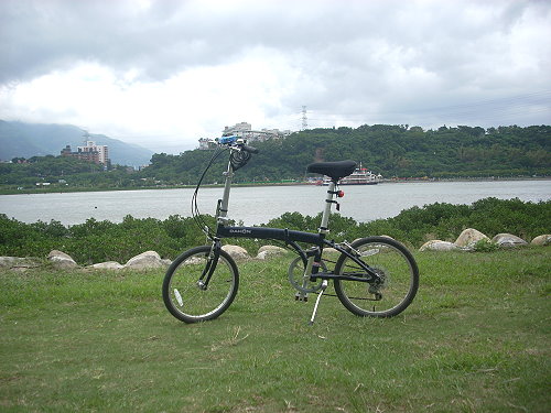 預算不太多,所以老公的買了Dahon的入門車款HA061寶藍色偏黑